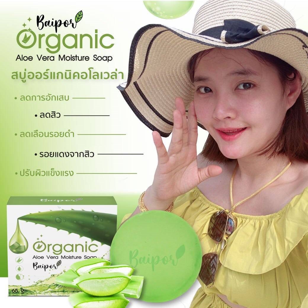 สบู่ใบปอ Baipor Organic สบู่ออร์แกนิค อโลเวร่า สบู่ล้างหน้าใบปอ ของแท้ 70 กรัม รหัส