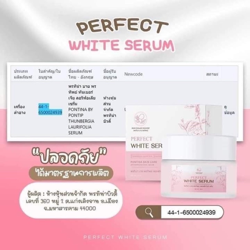 Perfect White Serum by Pontina เซรั่มรางจืด พรทิน่า ขนาด 15g.