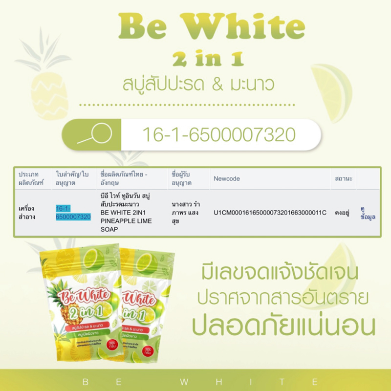 สบู่สับปะรด & มะนาว Be White 2 in 1 ช่วยให้ผิวกระจ่างใส ผิวเรียบเนียน