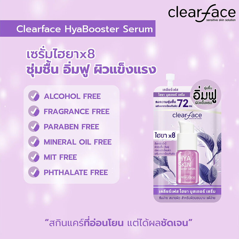 -5% S เครื่องสำอางแบบซอง [ยกกล่อง] Clearface Hya Booster Serum 8ml (1กล่อง6ซอง) ฿400฿450 สมาชิก VIP ฿380