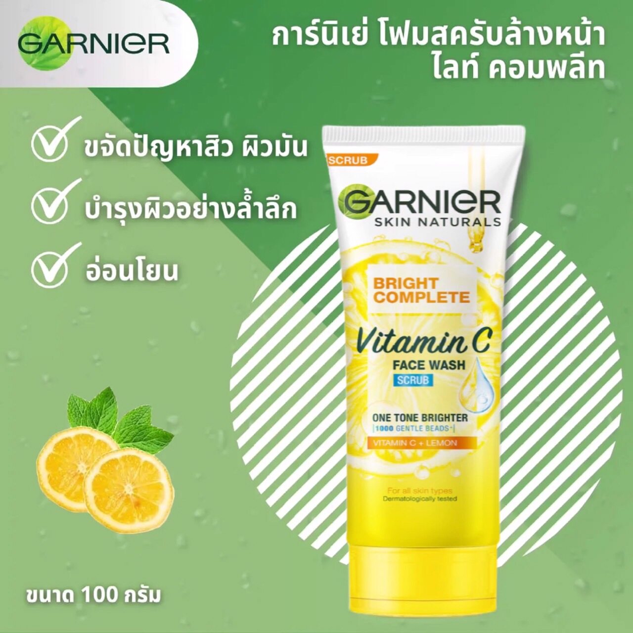 โฟม Garnier Bright Complete White Speed Multi-Action Brightening Scrub 100ml