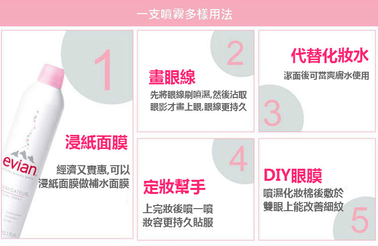 มีส่วน ประกอบแร่ธาตุที่สำคัญตามธรรมชาติและมีค่าความเป็นกลาง สเปรย์น้ำแร่เอเวียง