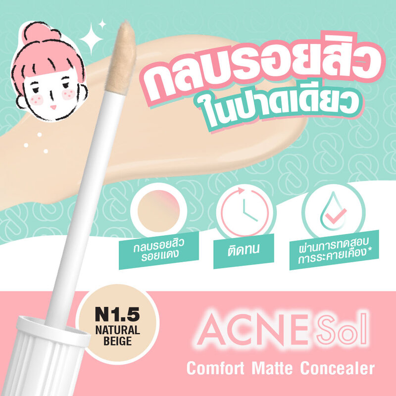 ศศิ แอคเน่ โซล คอนซีนเลอร์ 2มล Sasi Acne Sol Comfort Concealer 2ml. (กล่อง)