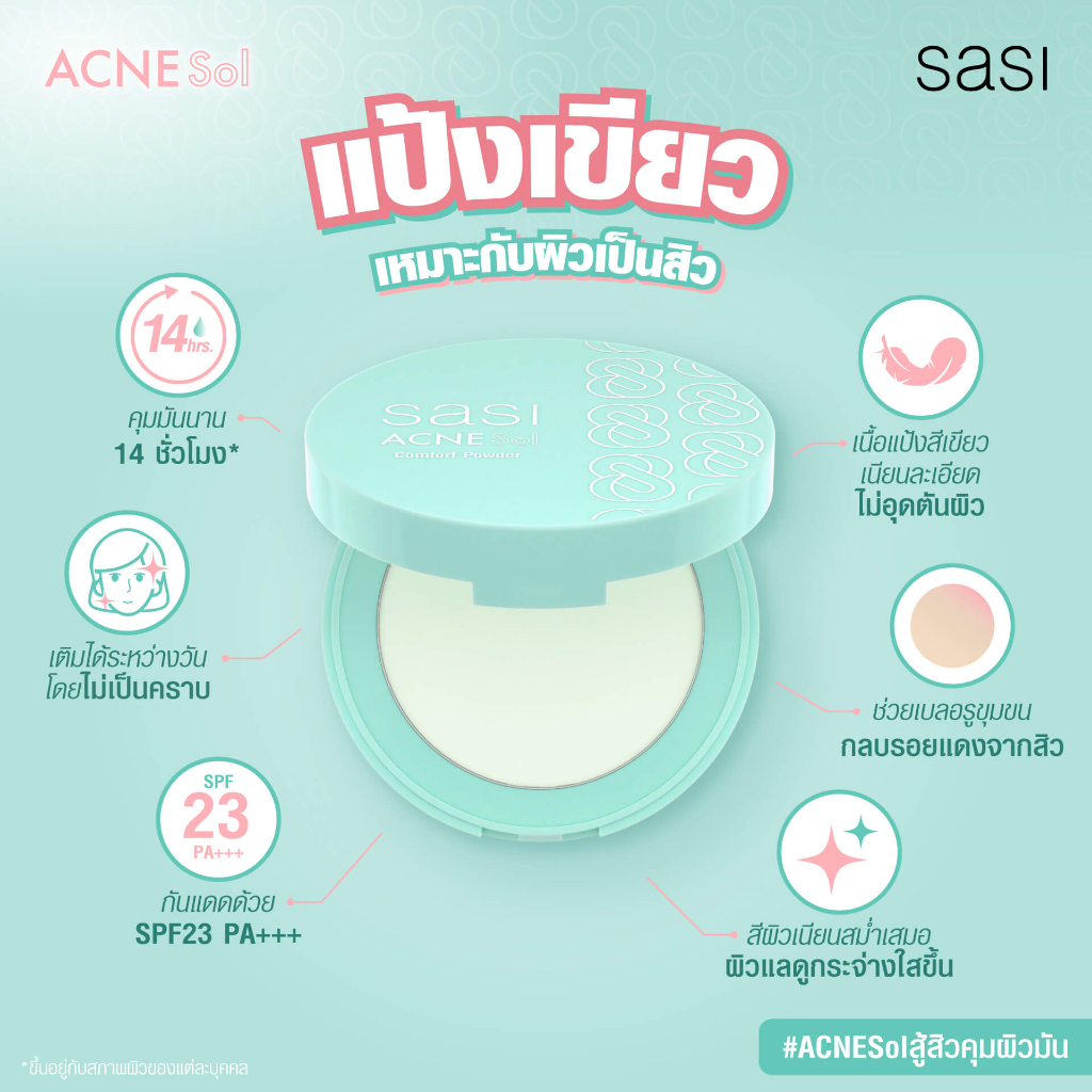 ศศิ แอคเน่ โซล คอมฟอร์ท พาวเดอร์แป้งอัดแข็งสีเขียว เบาสบายผิว ปรับสีผิวให้เรียบ