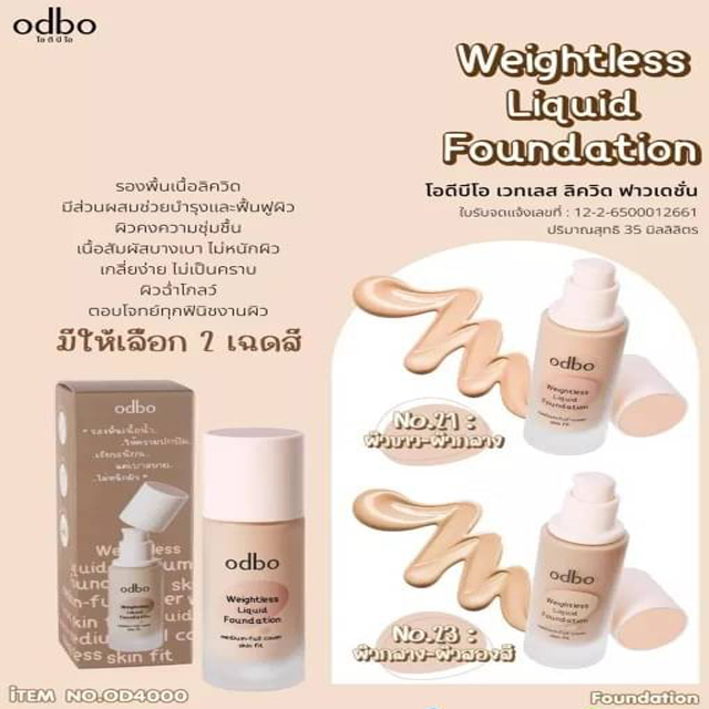 OD4000 Odbo Weightless Liquid Foundation รองพื้นเนื้อลิควิด #23 35ml.