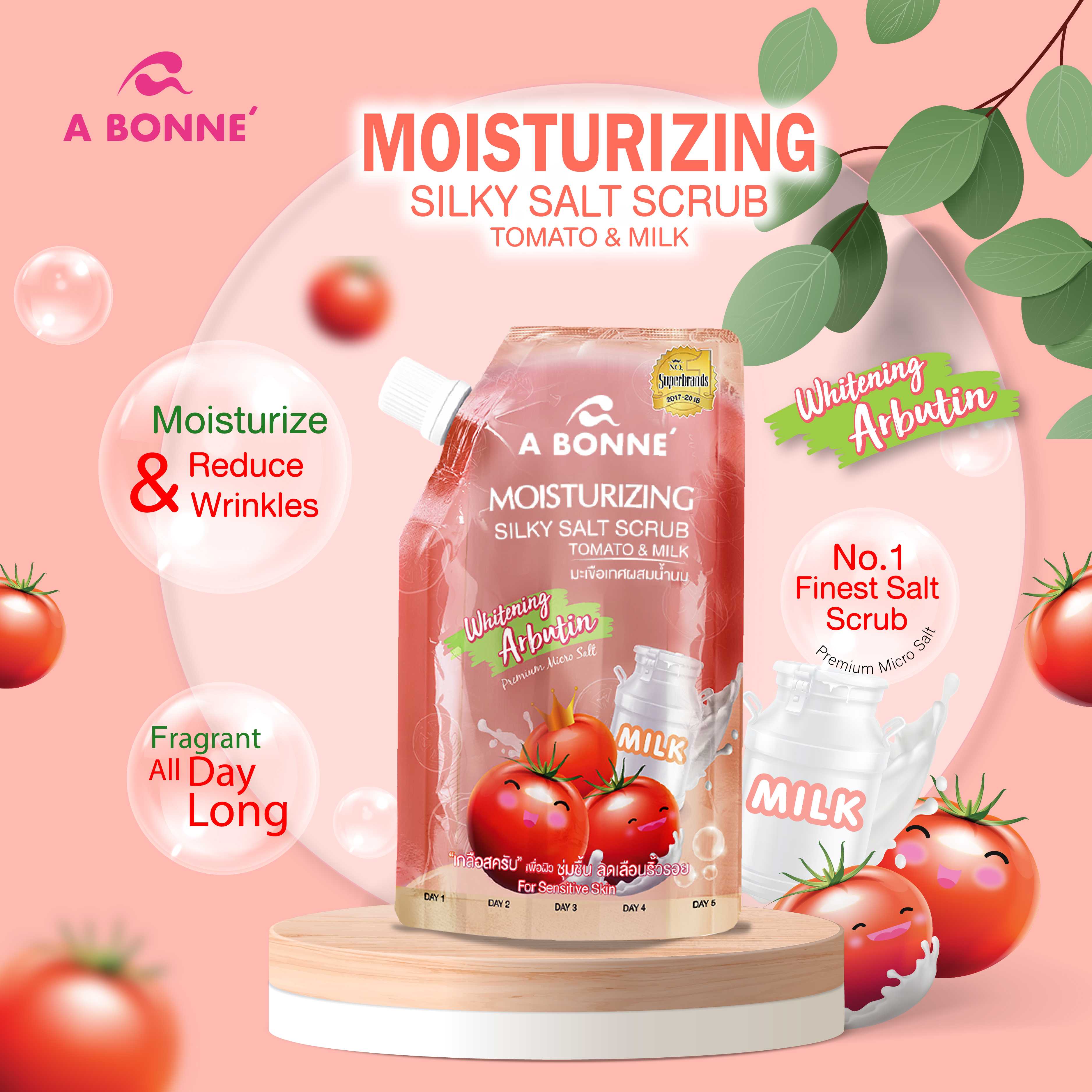 เอ บอนเน่ มอยเจอร์ไรซิ่ง ซิลค์กี้ ซอลท์ สครับ โทเมโท่ แอนด์ มิลค์ เกลือขัดผิวสูตรพิเศษ
