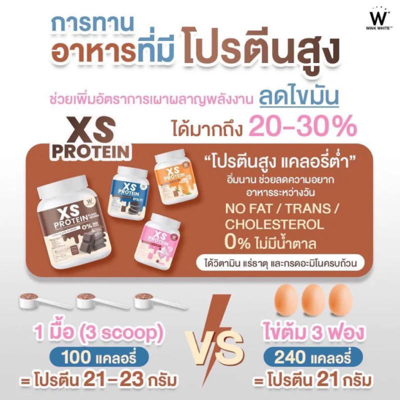 WINK WHITE XS PROBIOTIC PLANT-BASED CHOCOLATE เวย์โปรตีน ช็อกโกแลต 240g.