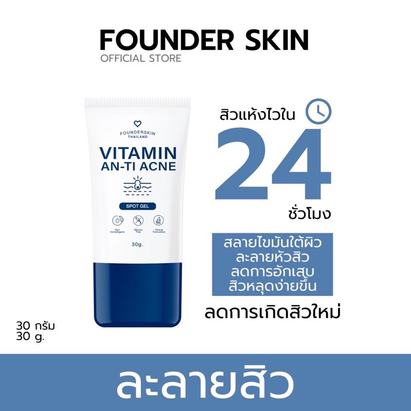 (หลอดใหญ่) เจลละลายสิว VITAMIN AN-TI ACNE Founderskin (ขนาด 30 กรัม)