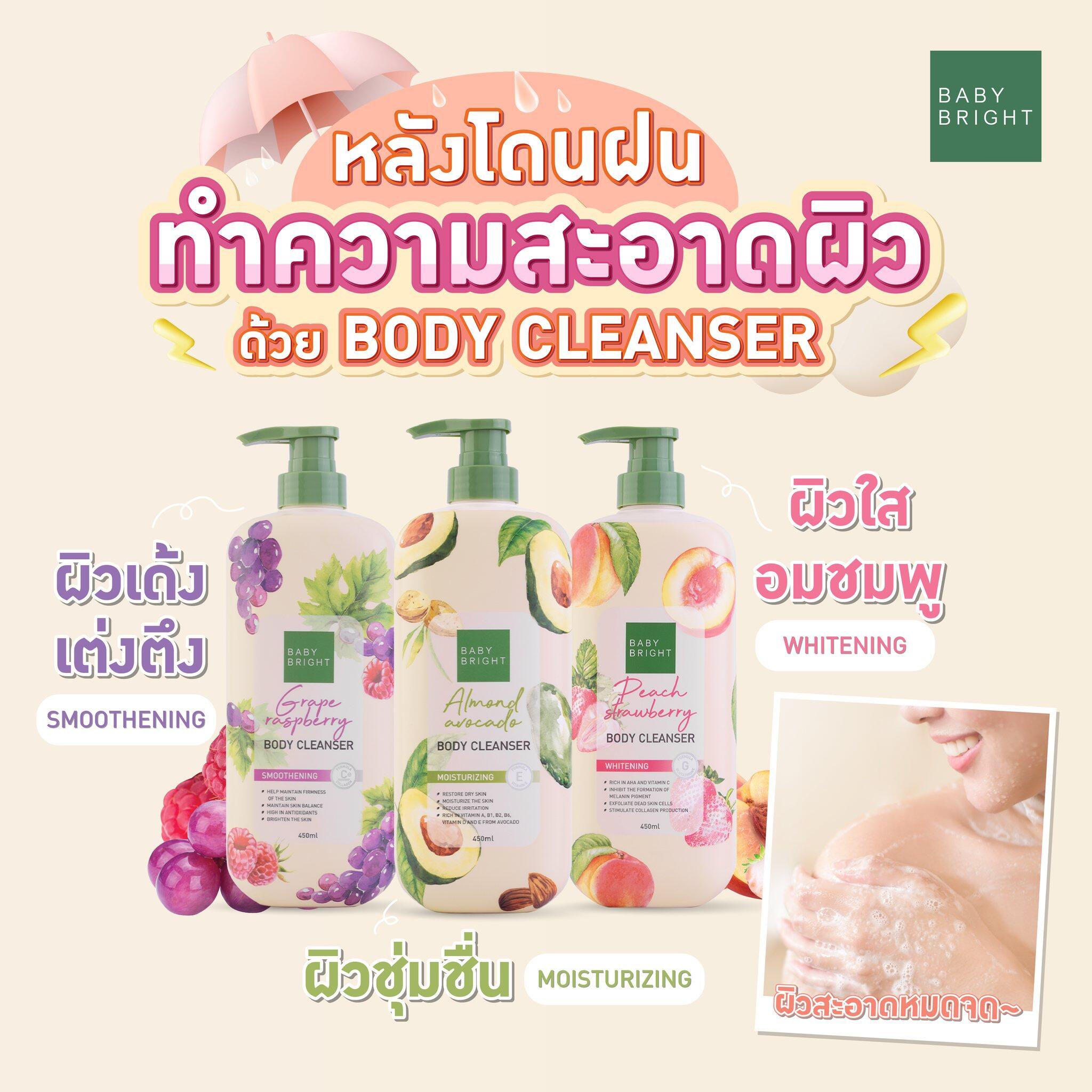 ครีมอาบน้ำ เบบี้ไบร์ท พีชสตรอเบอร์รี่บอดี้คลีนเซอร์ ทำความสะอาดผิวอย่างล้ำลึก