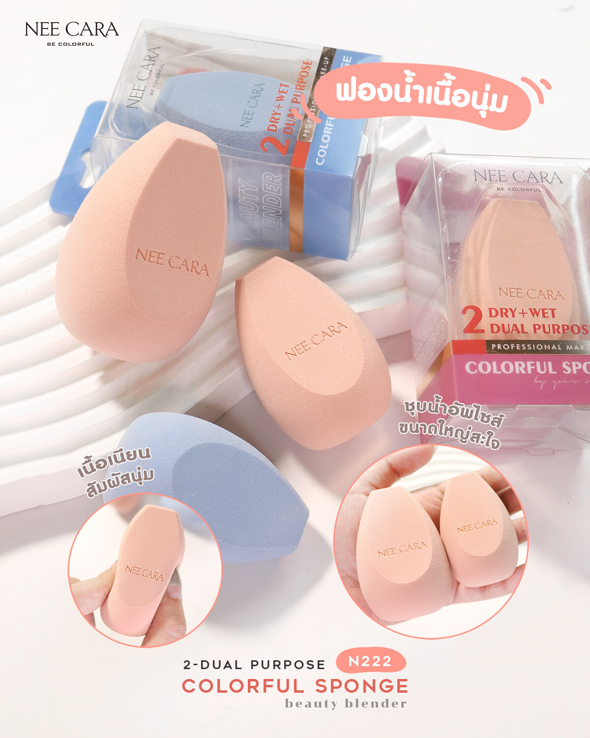 N222 Nee Cara 2-Dual Purpose Colorful Sponge Beauty Blender พัฟฟองน้ำ #ฟ้า