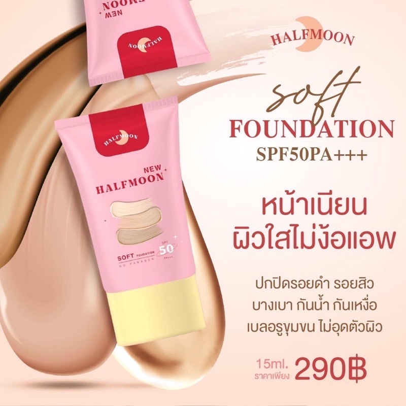 Halfmoon กันแดดฮาฟมูน รองพื้นฮาฟมูน รองพื้นหน้าเงา SPF50 PA+++ 01 ปกปิด บางเบา 15ml.