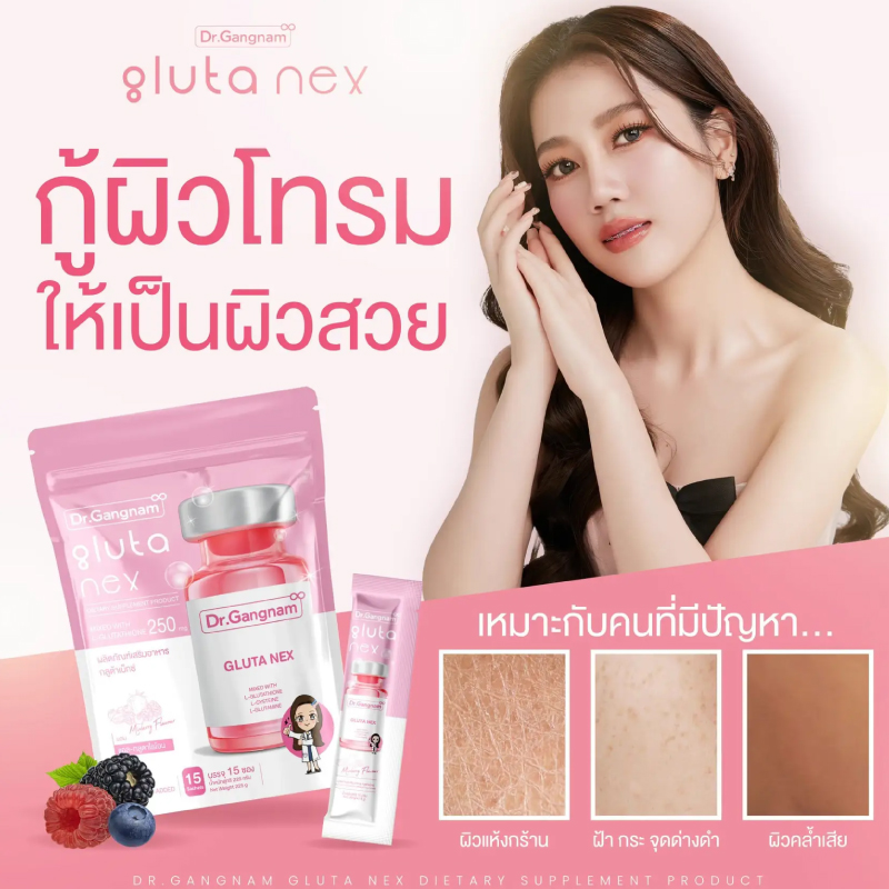 Gluta nex กลูต้าเน็ก Dr.Gangnam ดร.กังนัม กลูต้าสูตรเข้มข้น ฝ้า กระ จุดด่างดำ ผิวใส (1ห่อ*15 ซอง 225g)