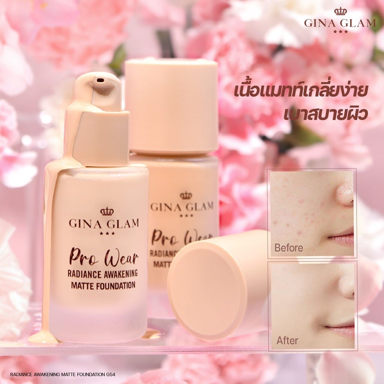 GINA GLAM G54 #01 จีน่า แมทท์ ฟาวเดชั่น รองพื้นเนื้อลิควิด สูตรผิวแมทท์ กันน้ำ กันเหงื่อ 35 ml.