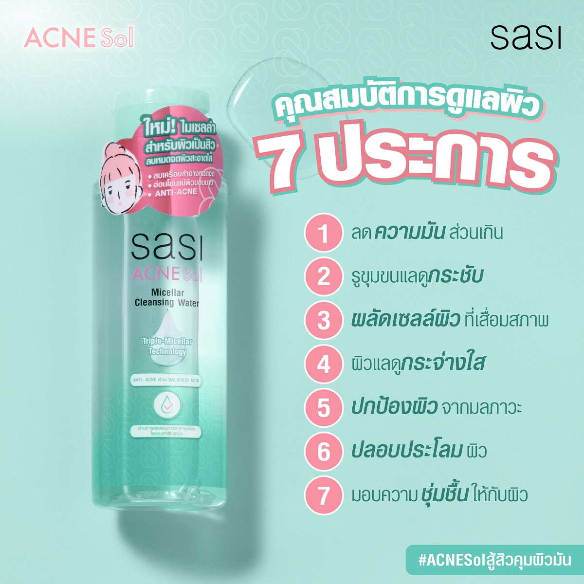 Sasi Acne Sol Micellar Cleansing Water คลีนซิ่ง 100g.