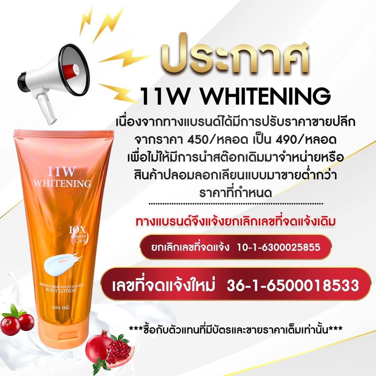 11W Whitening ครีมน้ำตบผิวขาว สูตรดื้อครีม ขาวกว่าฉีดx10 200 ml