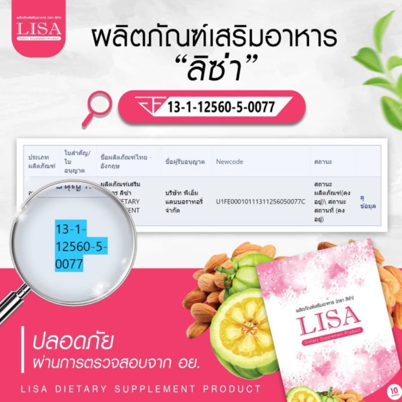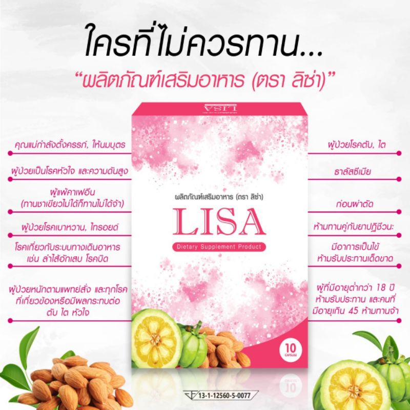 Lisa ลดน้ำหนัก อาหารเสริมลดน้ำหนัก สำหรับคนดื้อยาไม่โยโย่ 10แคปซู,