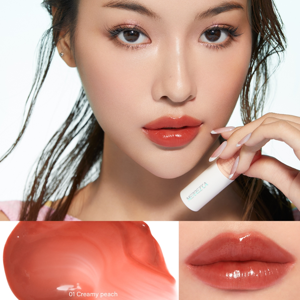 ลิปทินท์สูตรน้ำ สีชัด ติดทนนาน สัมผัสบางเบา ชุ่มชื้นตลอดวัน Merrezca Water Glow Lip Color 01 Creamy Peach ลิปทินท์ที่บางเบา ชุ่มชื้นน่าสัมผัส มอบฟินิชลุคฉ่ำวาว พร้อมคุณสมบัติทิ้งรอยสีชัด ติดทนนาน อุดมด้วยวิตามินอี ที่ช่วยเติมความชุ่มชื่นให้ริมฝีปาก เพื่อริมฝีปากอวบอิ่ม เนียนนุ่ม น่าสัมผัส พร้อมบำรุงริมฝีปากให้สุขภาพดีด้วยไฮยาลูรอนิค 8 ชนิด พร้อมปกป้องการสูญเสียน้ำ บางเบาสบายปาก ไม่เหนียวเหนอะหนะ ลิปทินท์ช่วยเพิ่มความชุ่มชื่นให้ริมฝีปาก มอบสัมผัสนุ่ม เนียน บางเบา เติมเต็มร่องปากให้แลดูอวบอิ่ม สุขภาพดี เม็ดสีชัด ปกปิดสีปากได้หมดจด ติดทนนานตลอดวัน มีไฮยาลูรอนิค แอซิดโมเลกุลต่ำและสูง 8 ชนิด ช่วยรักษาและเติมความชุ่มชื้นให้ริมฝีปาก ทำให้ริมฝีปากดูสุขภาพดี ชุ่มชื้นตลอดวัน เนื้อลิปเป็นฟิล์มไฮยาลูรอนิคบางมาก ทำให้ซึมซาบเข้าสู่ผิวได้ดีและล้ำลึกกว่า ติดแน่นบนริมฝีปากและลดเลือนริ้วรอย กระตุ้นการสร้างคอลลาเจน